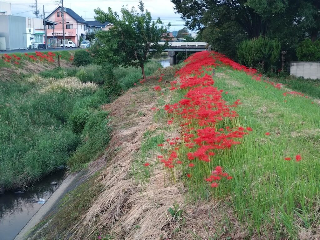 自宅近くを流れる、松田川の両側の土手に咲く、ヒガンバナが満開になりました。例年と比べて10日くらい遅い気はします。先日テレビで埼玉県日高市にあるヒガンバナの群生地が放映されましたが、深紅のジュータンで本当に鮮やかでったです。