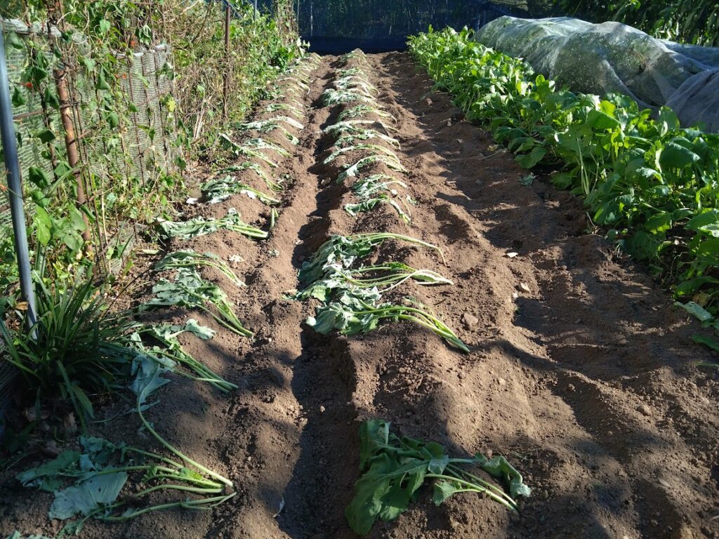 来春の収穫に向けて、かき菜を定植しました。かき菜はここ両毛線沿いの栃木県と群馬県で多く栽培されています。人によっては春になったら、このかき菜を頂かないと春を感じないというくらい、地元に密着した野菜です。
