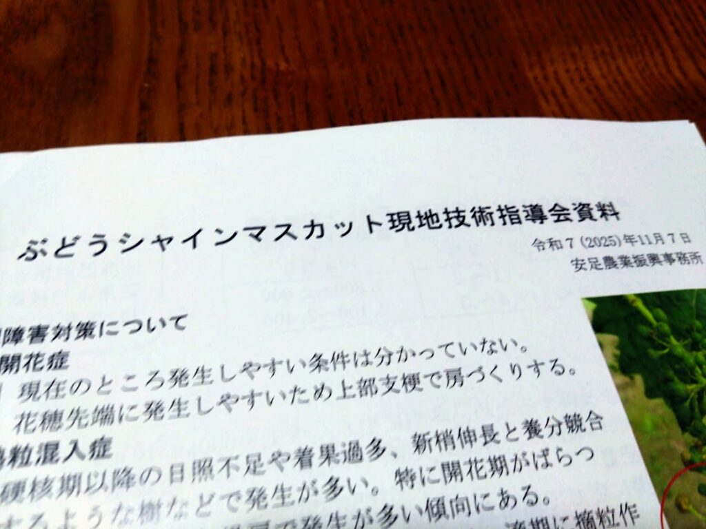 在籍している足利市観光農業振興会の講習がありました。会には2種類の果樹栽培農家があり、ブドウとブルーベリーです。講師は栃木県農業試験場の果樹担当技官が担当されました。今年発生した病害虫の種類とその対策です。それと高温対策と小雨対策そしてそれに関連した、施肥の仕方です。