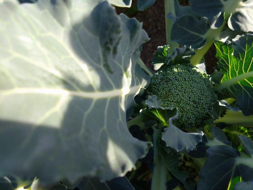 カリフラワーが大きくなってきているのはお伝えしましたが、冬野菜のもう一つの洋野菜の雄、ブロッコリーもようやく花蕾が付き始めました。カリフラワーは一度収穫するとそれで終わりですが、ブロッコリーは側枝が出て、あとからあとからどんどん収穫ができます。ただし花蕾の大きさは小さくなります。
