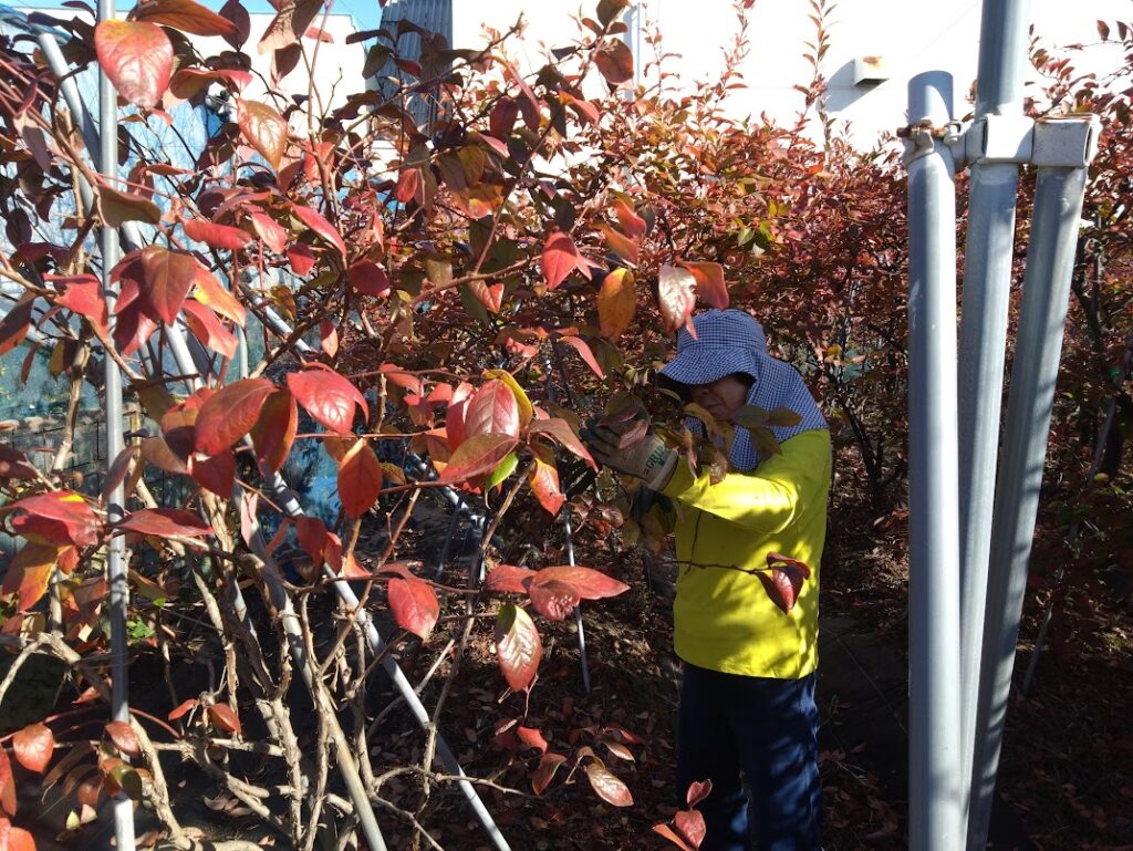 今日から冬季剪定をはじめました。まだ葉が沢山付いているため、木の全体像が判らないため、少し剪定に苦労しましたが、少しづつ慣れてきました。今日は初日ということで25列の中の1列しかできませんでした。この調子では今年中には終わりそうにありません。