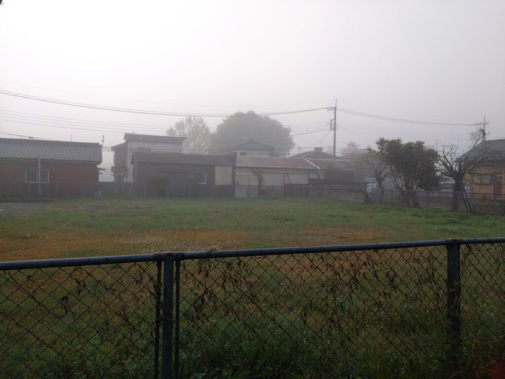 今日朝、散歩へ行こうとしたら、霧がすごかったです。