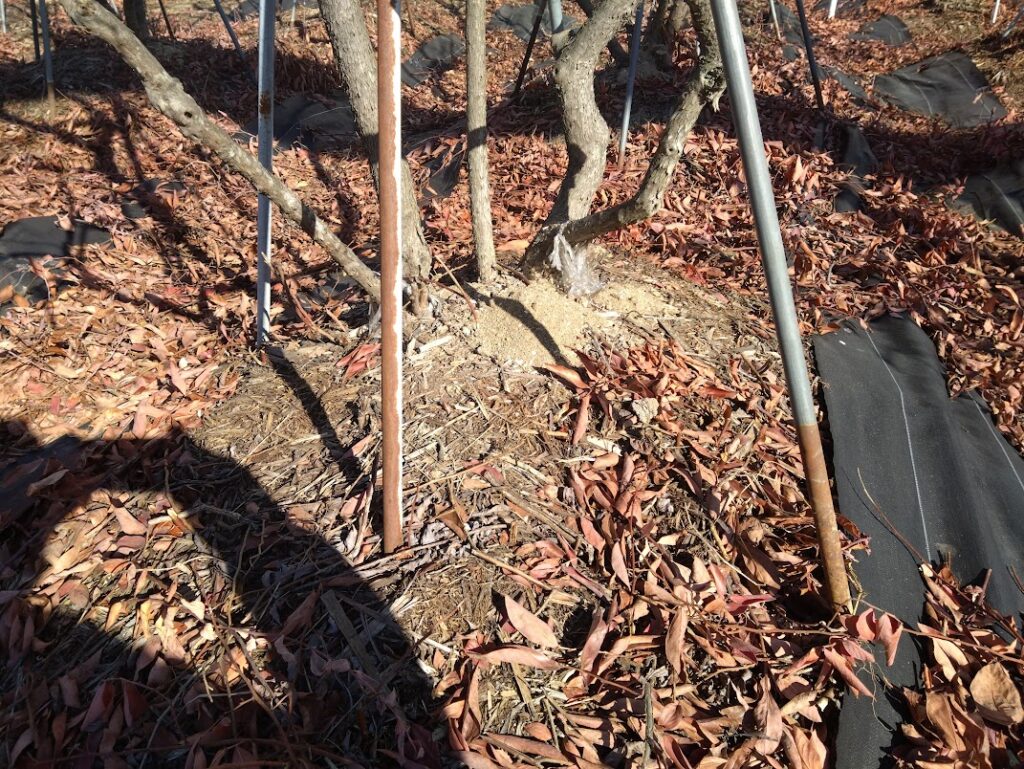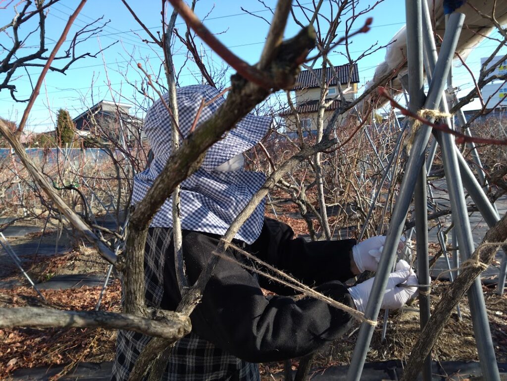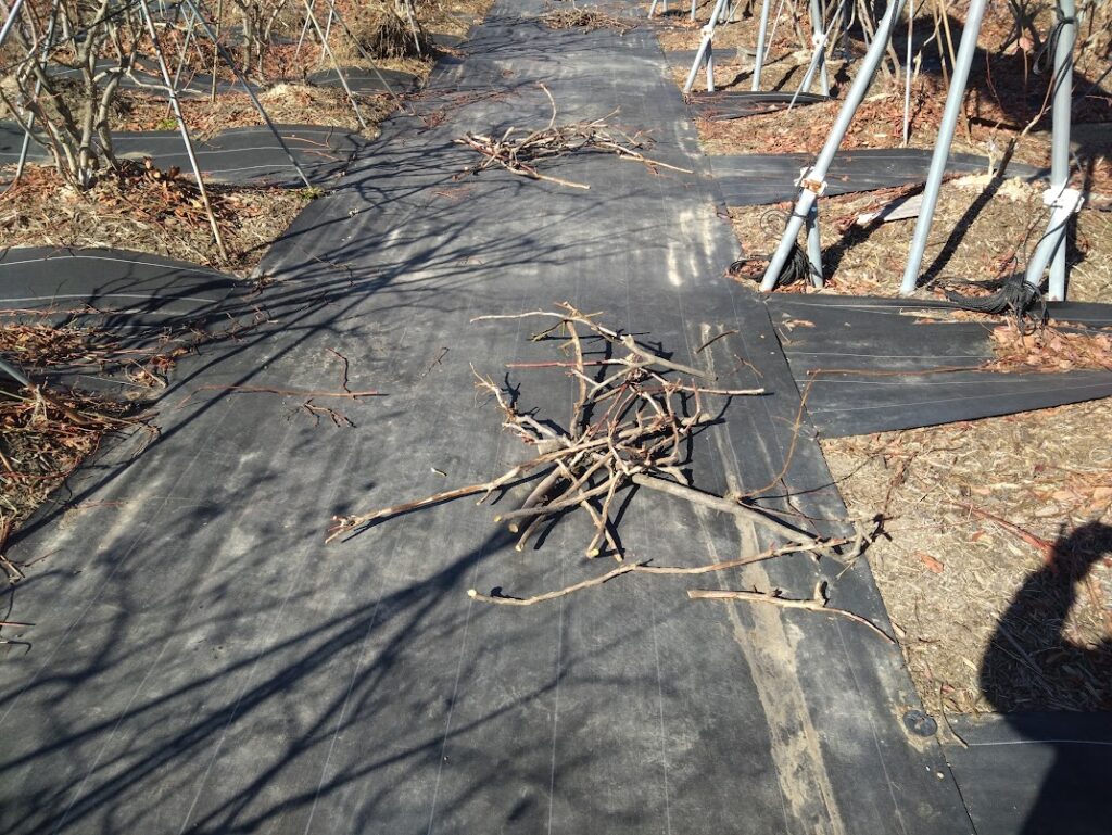 ようやく今日で枝の誘引作業が終わりました。でも農園での作業はこれで終わりではありません。剪定枝の後片付け、農園内の草取りとまだまだ作業は山ほどあります。