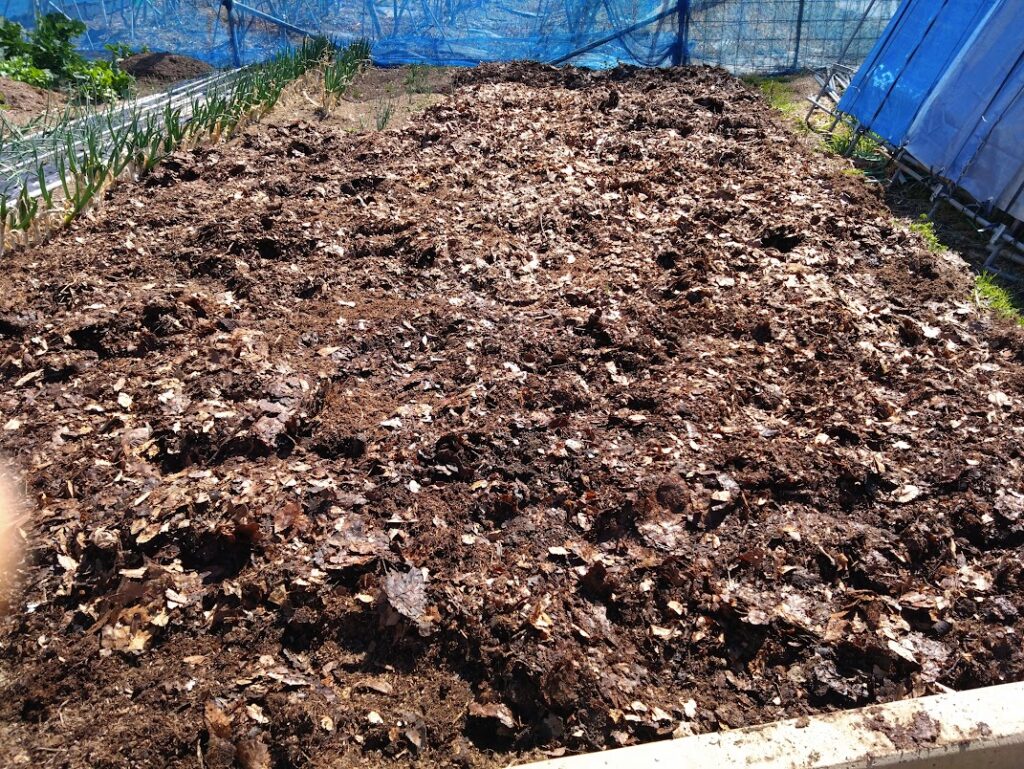 明日の雨を予想して、今日2度目のたい肥の運搬をしました。昨日は野菜畑の南側にたい肥を入れましたが、今日は北側に入れました。やはり甘くて美味しい野菜を作るのには、有機肥料であるたい肥を入れないとです。野菜は正直です。